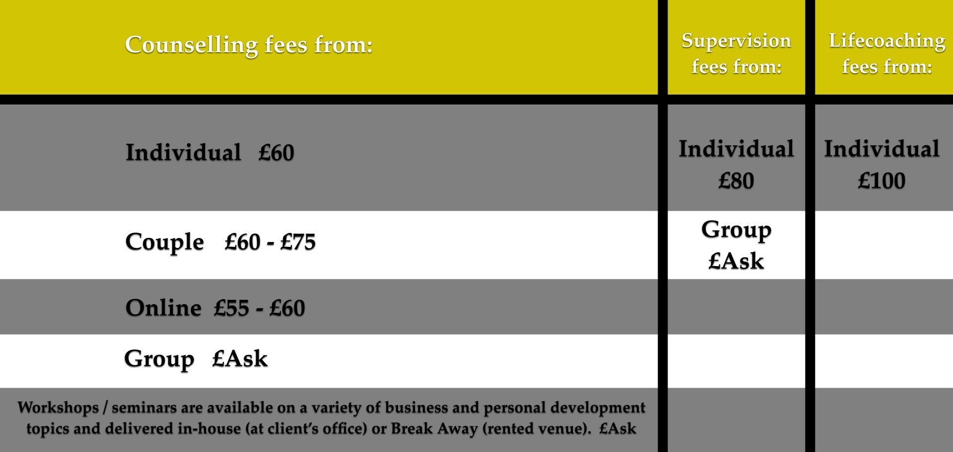 NOTE: These are all hourly fees.